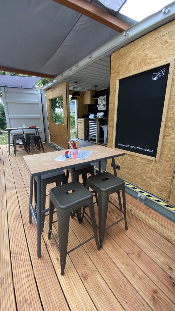 Unser mobiler Makerspace ist eine kreative Werkstatt zum Mitmachen, die überall aufgebaut werden kann – egal ob zu Hause, im Verein, in der Firma oder an einem besonderen Ort.